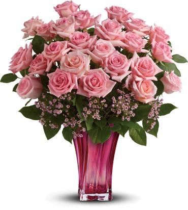 Spoil them with this glorious bouquet of 12 pink roses and a stunning blown glass vase, it's like sending two gifts in one!